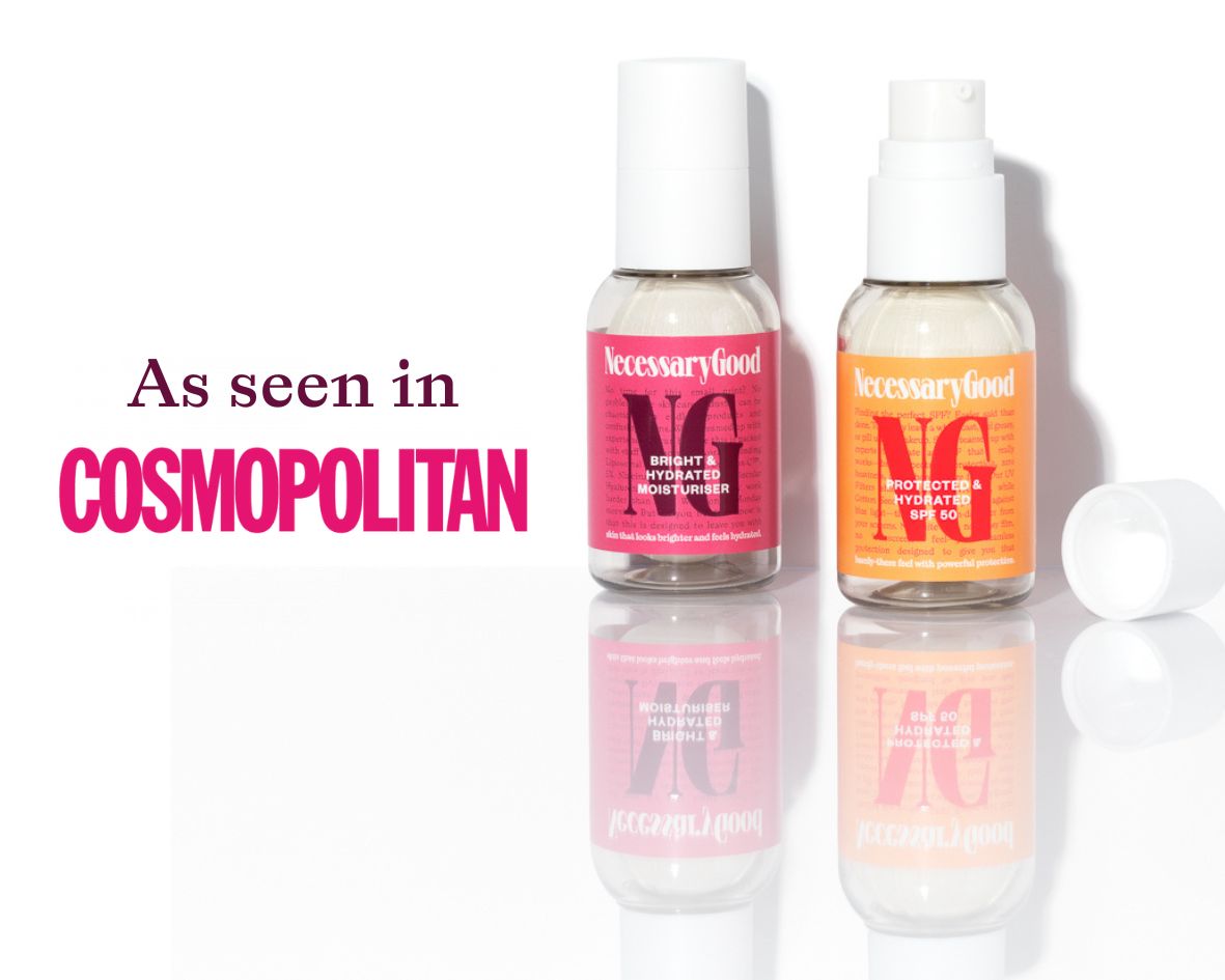 Ever stood in the skincare aisle, staring at 50 different creams, wondering what your skin actually needs? Or scrolled through endless product reviews, only to feel more confused than when you started? Us too. We believe great skin shouldn’t require a PhD, a 10-step routine, or half your salary. That’s why we created NecessaryGood—to bring you the best possible stuff for your skin, without the second guessing. So we teamed up with experts in white coats to pick the most effective, science-backed ingredients, and bottled them into a capsule collection of skincare essentials that do what they promise. Hydrating? Obviously. Brightening? You bet. Barrier-boosting? Of course. Confusing? Never. We don’t crank up percentages just to look impressive on a label. Our formulas are all about balance. Think of the perfect Espresso Martini—smooth, balanced, and made with great ingredients that work brilliantly together. When you take a sip, you just know—this is bloody good. Our skincare works—simple as. No overflowing shelves of products needed. Just hard working essentials that keep your skin healthy, hydrated, and protected, while fitting effortlessly into your life. And when you find skincare this good, wasting it isn’t an option. We use Innerbottle® technology, an airless balloon system that’s easy to recycle and collapses as you pump, making sure less than 1% of product gets left behind. Every drop goes where it belongs— on your skin. Our formulas? Smart, high-performance, and expertly curated. Our packaging? Thoughtfully designed and waste-free. Our approach? Effortlessly efficient: giving you the best ingredients, in the best formulas, without the fuss. Our people? Busy types who want great skin, but know skincare should fit into their life, not take over it. And when people start asking why your skin looks so damn good? Pass it on - easy, effective and enjoyable beauty is back. Yes to great skin. No to overthinking it. Ever stood in the skincare aisle, staring at 50 different creams, wondering what your skin actually needs? Or scrolled through endless product reviews, only to feel more confused than when you started? Us too. We believe great skin shouldn’t require a PhD, a 10-step routine, or half your salary. That’s why we created NecessaryGood—to bring you the best possible stuff for your skin, without the second guessing. So we teamed up with experts in white coats to pick the most effective, science-backed ingredients, and bottled them into a capsule collection of skincare essentials that do what they promise. Hydrating? Obviously. Brightening? You bet. Barrier-boosting? Of course. Confusing? Never. We don’t crank up percentages just to look impressive on a label. Our formulas are all about balance. Think of the perfect Espresso Martini—smooth, balanced, and made with great ingredients that work brilliantly together. When you take a sip, you just know—this is bloody good. Our skincare works—simple as. No overflowing shelves of products needed. Just hard working essentials that keep your skin healthy, hydrated, and protected, while fitting effortlessly into your life. And when you find skincare this good, wasting it isn’t an option. We use Innerbottle® technology, an airless balloon system that’s easy to recycle and collapses as you pump, making sure less than 1% of product gets left behind. Every drop goes where it belongs— on your skin. Our formulas? Smart, high-performance, and expertly curated. Our packaging? Thoughtfully designed and waste-free. Our approach? Effortlessly efficient: giving you the best ingredients, in the best formulas, without the fuss. Our people? Busy types who want great skin, but know skincare should fit into their life, not take over it. And when people start asking why your skin looks so damn good? Pass it on - easy, effective and enjoyable beauty is back. Yes to great skin. No to overthinking it.